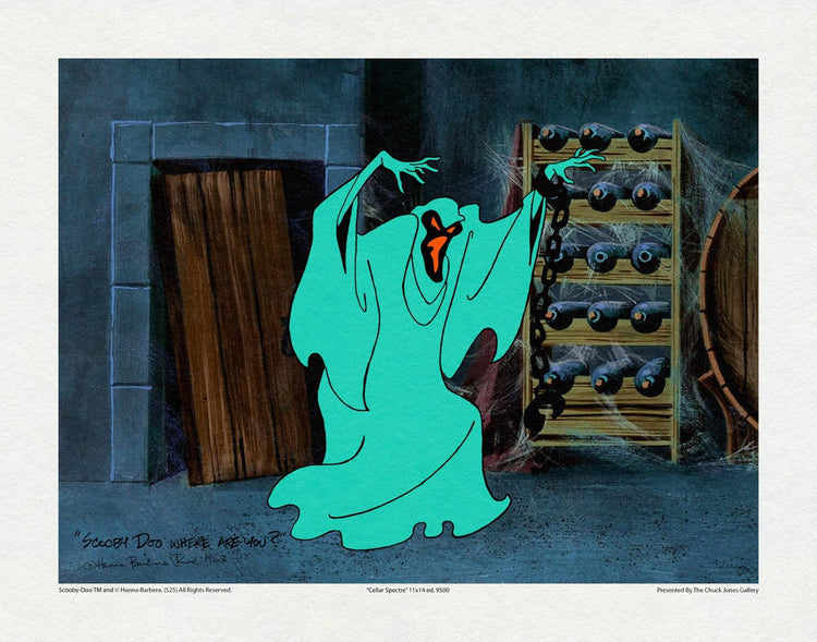 This phantom real estate comes with original stone flooring, vintage wine storage, and one very committed tenant who's been glowing green since the '70s. "Cellar Spectre" captures that classic moment when Saturday morning cartoons taught us that basements are never, ever safe.