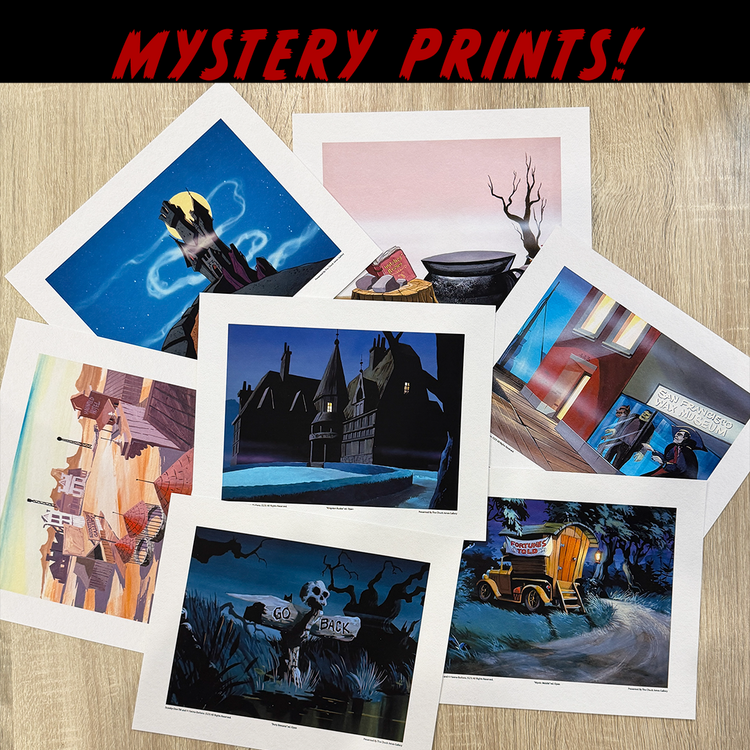 Each Mystery Envelope contains a random 8"x10" or 11"x14" fine art print pulled from our archive of backgrounds, spooky moments, and iconic Scooby-Doo scenes. All prints normally sell for $49 or $69— but for Black Friday weekend only, you can grab one for $29 or $39.