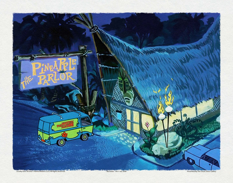 Welcome to The Pineapple Parlor — where tiki torches flicker, secrets hide in the shadows, and the Mystery Machine waits outside. This fine art print from Scooby-Doo, Where Are You? brings the iconic island haunt to life with vibrant, colorful detail. Hang it up… and keep an eye out for spooky visitors!